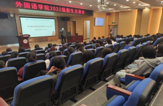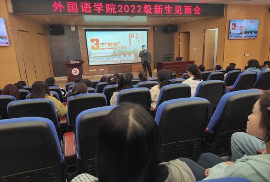 本次会议在学院的宣传片中拉开序幕。新生代表罗明凤同学发言,她呼吁大家要保持乐观、向上的心态,主动积极的学习,在自己的青春赛道上跑出最好的成绩。综合英语教研室主任何永娇副教授,作为教研室主任代表发言,她鼓励大家要做好职业规划,掌握自主学习的技能技巧,通过本科阶段的专业学习,能够收获到更好的成长。