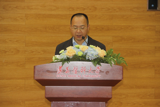 在比赛正式开始前,党支部书记唐君作简短发言,随后邀请龚其海副校长为大赛致辞。龚校长对参与此次大赛的师生及选手进行了高度赞扬,并围绕党的二十大召开对新时代遵医学子寄予了殷切嘱托。