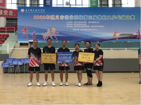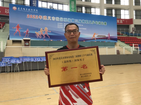 遵义市教育体育局及遵义市教育工会主办的遵义市教体系统第三届教职工乒乓球比赛2022年7月1日至7月3日在遵义职业技术学院举行,我院王刚才老师代表BW·西汉姆联代表队参赛并获得男子团体第一名和男子单打第四名好成绩。