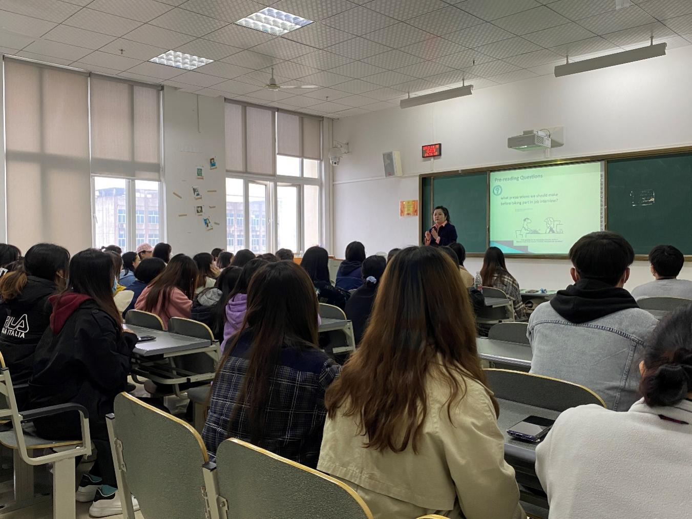 Hannah老师为大家强调了做好面试准备工作的重要性,面试前准备是面试过关的前提。她围绕面试着装、面试礼仪、面试心态、答题技巧以及如何展示自己的优点等为学生逐一进行讲解;同时,在课上为同学们讲解、展示了面试时的正确坐姿。最后,Hannah老师表示,面试时应大胆展示自己对工作的诚意与热情,鼓励同学们在校园内积极参与活动,锻炼自身的应试能力,为毕业顺利求职磨练技能。