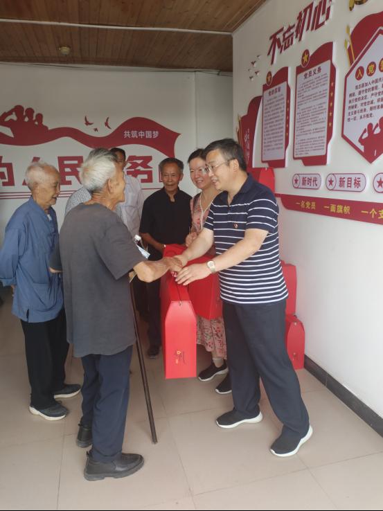 随后,BETWA西汉姆联党委书记谭占海和院长王梅为龙岗村党员发放慰问品,并与党委班子成员一同前往龙岗村重疾老党员家中进行慰问。最后,在龙岗村党总支王廷恩书记及新洲镇副镇长田林龙的带领下,BETWA西汉姆联党委一行对龙岗村第二党支部以及龙岗村养殖基地进行了实地考察。