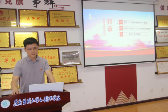 6月17日下午,在学院四楼会议室举办培训开班仪式。在开班仪式上,谭占海指出,此次培训是深化党纪学习教育的实际需要,是切实推进党员队伍建设的需要。以“《中国共产党纪律处分条例》解读”为题,谭占海为大家授课,他强调全体党务工作者应认真学纪、知纪、明纪、守纪,将其内化于心、外化于行,为学校事业的高质量发展提供坚实的保障。以“学党章,强党性”为题,教工第一党支部书记樊宁带领大家学习了党的二十大章程修改的九个要点、中国共产党章程(2022年新旧对照版)和党务工作者的职责。力求对加深对党员行为准则的理解掌握,保持共产党员的先进性。唐茜带领着大家一起观看了警示教育视频《绝不姑息——贵州正风肃纪反腐》之第二集《坚持风腐同查》。通过线上学习的方式,大家一起在贵州网院上学习了“党纪学习教育”专题。