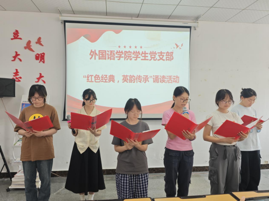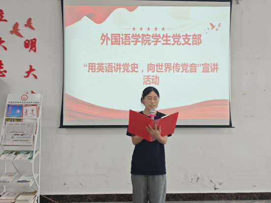 活动围绕“四个一”展开,即一场诵读、一次宣讲、一轮竞赛、一场仪式。在“红色经典,英韵传承”诵读活动中,党员们以集体英文合诵的方式,深情演绎《可爱的中国》《为人民服务》《少年中国说》等作品,搭配背景音乐与PPT,尽显红色经典的魅力。“用英语讲党史,向世界传党音”宣讲活动中,党员们用英语讲述张桂梅、陈祥榕等人物事迹以及改革开放、长征精神等,并用视频记录,展现了英语教育的专业特色。党建知识竞赛环节,内容涵盖党史重要会议、贵州本地红色资源等,党员们踊跃参与,最终20名党员脱颖而出。最后是“重温入党初心,铭记政治生日”仪式,两位书记为党员们送上定制的双语贺卡,党委书记带领全体党员重温入党誓词。3名党员还分享了入党故事,讲述了在英语志愿服务等活动中践行党员使命的经历,引发了大家的强烈共鸣。