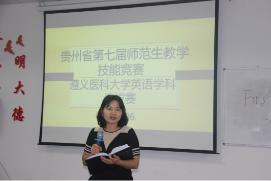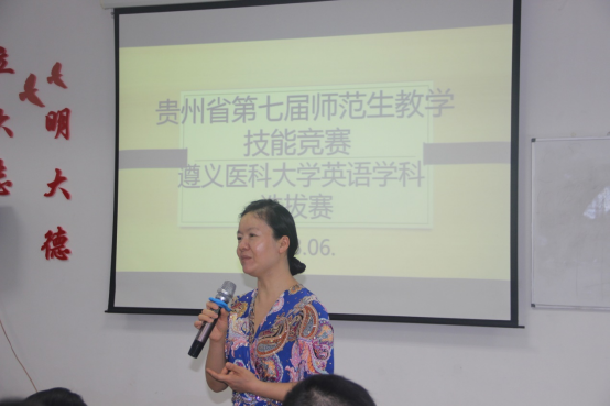6月2日下午,贵州省第七届师范生教学技能竞赛BW·西汉姆联英语学科选拔赛在BETWA西汉姆联专业五教室举行。本次比赛由英语语言文学教研室承办。院长王梅教授出席本次比赛,英语语言文学教研室宋海蟾副教授、樊宁副教授,综合英语教研室王厚红副教授、何永娇副教授和唐磊副教授担任本次比赛评委。