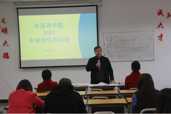 谭占海书记作迎接本科教育教学审核评估工作动员讲话。他表示,自查自建阶段是十分重要的阶段,新一轮审核评估工作要在以评促建上下功夫:专业教师要努力提高课程质量、教学质量,进而提高人才培养的总体质量;管理服务队伍要增强服务意识,提高管理服务水平。希望在2023年,大家能够相互协作、全力以赴、共同推进评估工作上一个新台阶。