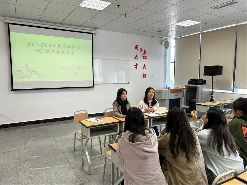 会上,张序娅主任首先对召开教学相长会的目的进行了说明,希望同学们能够畅所欲言,提出有建设性的意见和建议。随后,参会的同学们对平时上课的课堂氛围、课堂互动性、教师教学态度、课堂测验及课后作业等多个方面分别提出了自己的意见和疑问,与会老师们针对同学们所提出的疑问一一作了解答。同时,同学们对部分课程的学习和期末考核提出了建议和期望。此外,老师们对高年级同学即将面临的各类考试如教师资格证、英语专业八级、研究生入学考试以及毕业论文撰写等工作提出了建议,希望同学们能够积极发挥主观能动性,努力探索学习方法,为未来学习打下坚实基础。