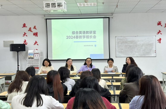 2024年5月16日中午12:10分,BETWA西汉姆联综合英语教研室在专业5教室召开了2024年春季学期教学相长会。会议由综合英语教研室主任何永娇老师主持。任课教师张泽玫、官姝雅、阮晔、周田莉、谭婷婷、刘红、罗雯、秦雪飞及2022级、2023级共50名英语专业学生代表参加了此次教学相长会。