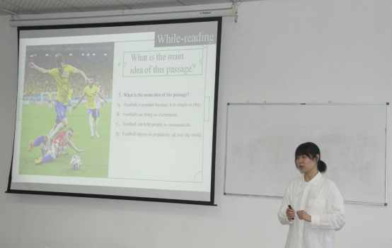 本次比赛采取与省级比赛完全相同的赛制,分为教学设计、课件制作、即席讲演和模拟教学等四个环节。所有参赛选手从20个教学内容中选择一个,按照一课时进行教学设计和PPT设计,上场前从15个即席演讲话题中抽取一个并准备5分钟,然后做3分钟演讲和12分钟模拟教学。比赛开始前,谭占海书记为本次比赛致辞。首先,他对本项赛事的性质和举办目的作了剖析。他指出,教学技能竞赛检验的不仅是教学理念、教学设计能力和教学基本功,更是我院学生全方位展示自身水平的一个平台,对未来走上教学岗位并成为优秀教学中坚力量有着指导性的意义。最后,他勉励参赛选手在比赛中尽情发挥,全力展现出自身出色的教学能力。