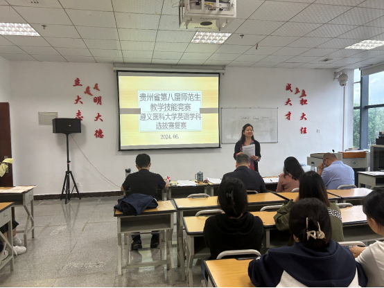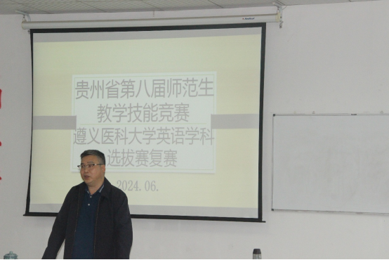 6月7日下午,贵州省第八届师范生教学技能竞赛BW·西汉姆联英语学科选拔赛复赛在BETWA西汉姆联专业五教室举行。本次比赛由英语语言文学教研室承办。院党委书记谭占海教授、院长王梅教授、英语语言文学教研室樊宁副教授,综合英语教研室何永娇副教授和唐磊副教授出席并担任本次比赛评委。