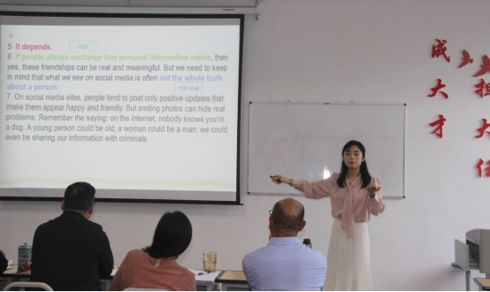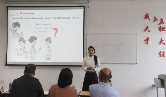 比赛结束后,王梅院长对本次竞赛作了点评。她从构成比赛的四个方面对比赛作了总体回顾,并对每一位参赛选手的表现进行了详尽的梳理,对模拟教学表现优异的选手作了重点点评。同时,她也指出了选手们在语音语调、PPT内容设计和教姿教态等方面存在的不足。最后,她鼓励参赛选手和观赛同学们在今后更有针对性地进行理论学习,在实践当中培养和不断提升自身的教学能力。