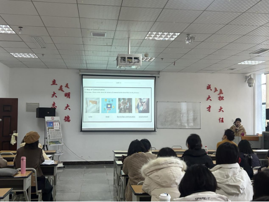 首先,本学期学院新进教师胡安毅结合所授课程《大学英语1》进行教学展示,展示内容为Unit 2 Lost in Communication阅读部分,胡老师的教学流程完整,展示过程充分利用了图片等多模态教学手段,在讲授知识的同时,帮助学生探索信息化时代给青年带来的挑战与危害。