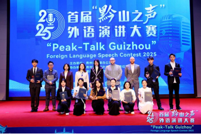 2025年4月11日,由贵州省外事办公室主办的首届"黔山之声"外语演讲大赛圆满落幕。我院2022级英语专业陈世操同学凭借优异表现在省内外500名选手中脱颖而出荣获高校组二等奖(第四名),并入选贵州省外语人才库。