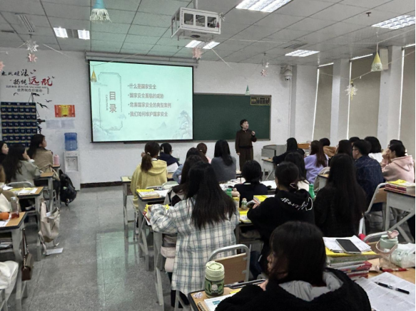 党的二十大报告指出“国家安全是民族复兴的根基,社会稳定是国家强盛的前提。必须坚定不移贯彻总体国家安全观,把维护国家安全贯穿党和国家工作各方面全过程,确保国家安全和社会稳定”。唐茜围绕什么是国家安全、国家安全面临的威胁、危害国家安全的典型案例、我们如何维护国家安全四个方面开展国家安全教育。从身边真实的危害到国家安全的案例入手,她为同学们理清了威胁到国家安全可能带来的严重后果,强调了维护国家安全的重要性。大学生作为社会主义的建设者和接班人,在维护国家安全中扮演着不可推脱的重要角色,心系国家安全、自觉维护国家安全是每一位大学生乃至每一位中国公民的神圣职责。