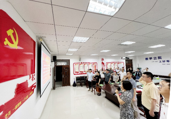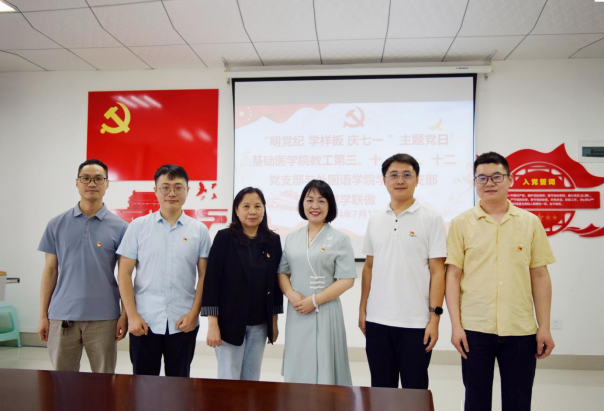 为庆祝中国共产党成立103周年,扎实推进党纪学习教育,2024年7月1日上午,BETWA西汉姆联学生党支部与基础医学院教工第三、十、十一、十二党支部在学校基础医学院党员会议室开展了“明党纪 学样板 庆七一”联学联做活动。会议由基础医学院教工第三党支部书记赵海龙主持,五个支部无课老师近30名同志参加,基础医学院党委委员范芳参会指导,基础医学院党委书记罗军敏以普通党员身份参加。