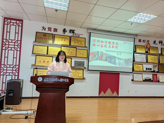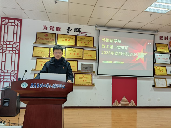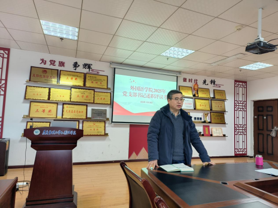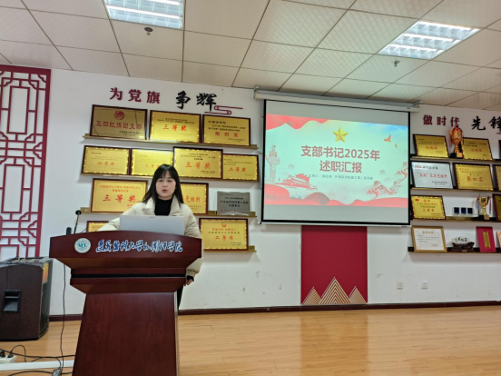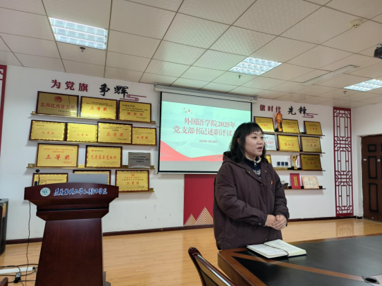 教工第一党支部书记樊宁、学生党支部书记杨芳和教工第二党支部书记周田莉依次围绕基层党支部2025年“三会一课”开展情况、支部标准化建设、支部的引领带头作用等重要内容,进行了述职汇报。学院党委书记谭占海对教工第一、第二党支部书记汇报分别做出点评,学院党委副书记唐茜对学生党支部书记汇报做出点评。