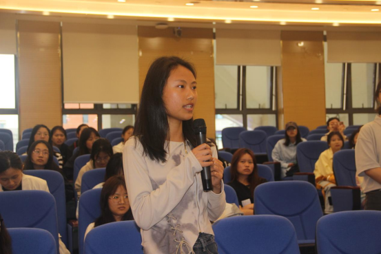 沙龙会最热烈的环节是现场互动问答,浓厚的氛围感染在场的每一个人,同学们踊跃地提问,三位校友对如何确定考研院校、跨专业考研注意事项、考研如何释放压力等问题进行了详细解答,为同学们提供了实用性建议。现场分享的人生五问,引发同学们对人生的思考,梳理出清晰的目标,为之正确而持续奋斗,更新思维方式,不给自己的人生设限。
