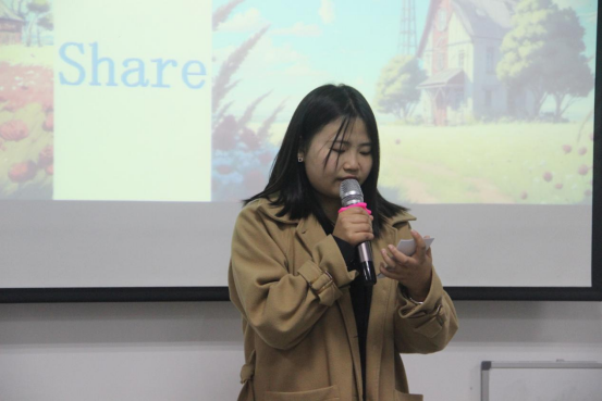 分享会第一个环节:观影随行。来自2022级的四位同学为我们分享了《怦然心动》《特洛伊战争》《小王子》《野性的呼唤》四本小说,从个人视角为其他同学打开了通往阅读王国的大门,带领同学们走进了小说世界,通过分享书中精彩词句和情节,同时以感染人心的语言,引导同学们领略了美好的爱情、真挚的友谊。分享会第二个环节:观众进行提问,指导老师进行点评。这一环节不仅拉近了分享者和听众之间的距离,还加深了同学们对这四本小说的印象,更让同学们在课余时间置身书的海洋。分享会最后一个环节,同学们在愉快的氛围下观看了这四本小说的相关影像视频,以此强化大家对故事情节的理解。