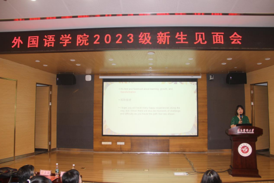 为帮助2023级新生尽快转变身份,更快了解专业概况、明确学习目标,适应大学教育,2023年9月27日18:00,BETWA西汉姆联在图书馆1号多功能厅开展新生见面会。BETWA西汉姆联党委书记谭占海、院长王梅、党委副书记唐茜,综合英语教研室主任、语言文学教研室主任和副主任、党团负责人、专职辅导员、教师兼职班主任、学生班导及2023级全体新生参加见面会,会议由学生党支部书记杨芳主持。