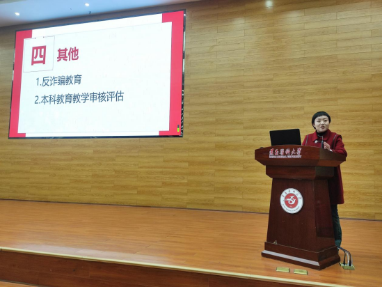 活动围绕学习纪律、考试季安排、意识形态风险点、反诈骗教育、安全教育、学生学习生活注意事项等方面来展开。以学生违规违纪案例为切入点,老师们着重强调了学习纪律的重要性,教育同学们要遵守校规校纪,提醒大家要诚信考试;通过集中观看禁毒宣传片,教育同学们要远离不良场所和黄赌毒。结合学生被诈骗的实例,老师们告诫大家要提高警惕,提升反诈骗能力,维护自己的合法权益;同时,辅导员还结合自身成长经历,普及了心理健康教育知识,提出了相应的解决建议。最后,老师们还提醒了大家学习、请假、生活等方面的注意事项。唐茜强调,校园不是靠一己之力建成的,而是要靠广大学子与老师们勠力同心。