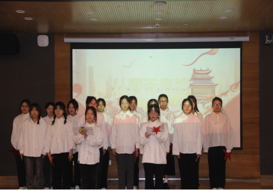 发时代之声,抒少年之志。参赛选手们围绕朗诵主题,用他们那自信又坚定的眼神,高昂又真实的情感,将新时代的青年风貌展现得淋漓尽致。选手们通过演绎《华夏青年志》《先辈安心,山河无恙》《恰是少年风华》《从春天起航》《薪火一二九》《青年说》《青年谈》等节目,展现了慷慨激昂、大气磅礴、活力四射的青年风貌,传达了不忘历史、牢记使命的理念,表达了对祖国的热爱和对投身于社会主义事业发展的热情。舞蹈、歌唱、情景剧与朗诵的结合,多姿多彩的表演方式,一个个精彩的舞台,使得台下观众掌声连连。经过激烈的比拼,《恰是少年风华》朗诵队摘得桂冠;《先辈安心,山河无恙》和《青年说》获二等奖;《华夏青年志》《从春天起航》《薪火一二九》《青年谈》获三等奖。唐茜做赛后点评,她勉励学生多多展现自己,在舞台上大放溢彩,同时赞扬选手们浓厚的爱国情怀和强大的表现力。