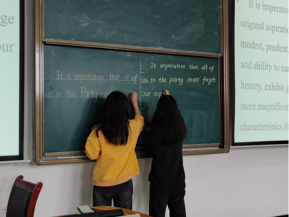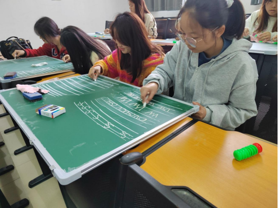 为了提高同学们英语粉笔字书写水平,全面提升教学基本功和就业核心竞争力,2023年11月4-19日,BETWA西汉姆联在一号教学楼1-7A教室、第25阶梯教室开设了英语粉笔字板书训练营。训练营邀请了遵义师范学院BETWA西汉姆联副教授梁理主讲,学院160名同学参加训练。