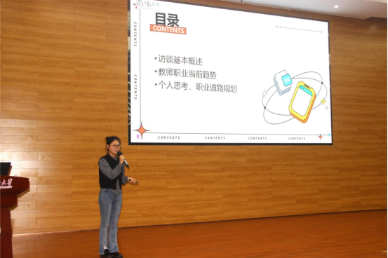 访谈一岗,深入了解一岗。比赛伊始,16位同学依次登台,访谈对象有教师、公务员、销售员、民警等各式各样的职业,从访谈岗位简介、入职门槛、入职标准、薪资待遇、工作环境、发展前景等多方面并结合自己访谈对象的信息,阐述了自己的访谈情况与个人思考。整个比赛气氛热烈,选手们精神饱满、表现自信,充分展现了他们对于职业规划和未来发展的热情和探索精神。最终,比赛评出一等奖1名,二等奖3名,三等奖5名。