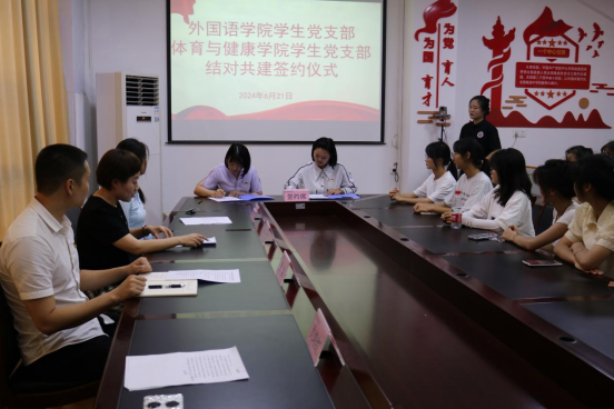 签约仪式上,杨芳、吴培红分别介绍了各自党支部的发展现状,指出了两个党支部结对共建的渊源、合作的必要性,并提出了合作需求。随后,杨芳与吴培红签定了党支部结对共建协议。唐溢对BETWA西汉姆联的到来表示热烈的欢迎,希望能通过结对共建和本次帮扶活动加强两院之间的学习交流。唐茜说,BETWA西汉姆联高度重视学生体育锻炼,但体测一直是大部分英语专业学生的痛点难点,此次的结对帮扶能够发挥两个专业的优势,取所长补所短,对促进两个学院的合作交流发挥重要意义。