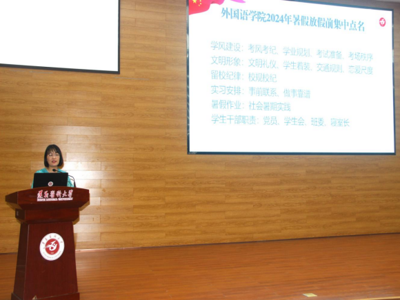 点名围绕安全教育、反诈骗教育、学风建设等方面展开。阮佳佳着重强调了假期安全、两卡安全、假期兼职安全;她反复提醒同学们要谨防兼职陷阱,告诫同学们要警惕“帮信罪”。针对学风建设、文明形象、留校纪律、实习安排、社会暑期实践、学生干部职责方面,杨芳强调考风考纪是学风建设的基石,要做好学业规划,期末考试备战要提前准备,要遵守考场安排,遵循考场秩序;要树立一个文明的大学生形象,注重文明礼仪,比如说在个人着装、交通规则、恋爱交往尺度等方面;留校的同学要遵守学校的校规校纪和寝室管理规则,实习生要提前和实习单位取得联系,安排好实习上岗相关事宜;她鼓励大家要积极地投入到社会实践中,在实践中锻炼自己的听说读写能力;学生干部要时刻牢记自己的工作职责,尽职守责,要做好学生与辅导员的纽带。唐茜对集中点名做出总结,并对同学们提出要求,她指出只要努力了就会有收获,要大胆尝试,跳出舒适圈,不能好高骛远。