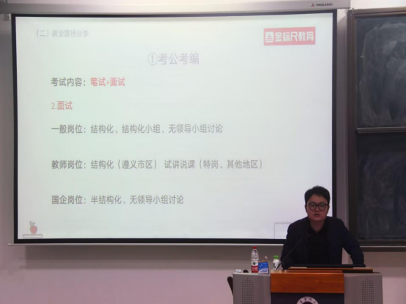 为了帮助大学生进一步把握就业方向、找准职业定位、提升就业竞争力,2024年12月23日18:00,BETWA西汉姆联在第三教学楼17阶梯教室开展了就业指导讲座。本次就业指导讲座由学院党委副书记唐茜主持,邀请到了贵州金标尺优众教育咨询有限公司何向旭作为主讲,2021-2022级近170名同学参与。
