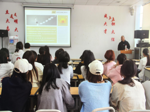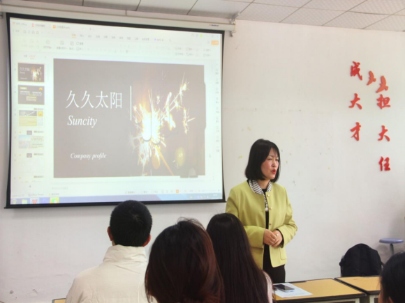 久久太阳的公司代表从公司简介、企业优势、业务展示三个方面向同学们介绍了该公司的基本情况、业务领域、公司发展前景、晋升途径以及福利待遇等内容,并提出了当前外贸业务员、跟单员等岗位的需求,讲解了简历投递方式和招聘流程。他用生动的案例和详实的数据强调,就业不是一蹴而就的,而是一个需要长期规划、持续努力和不断调整的过程。宣讲结束后,他与同学们进行了深入的交流,表达了对大家加入的期待,还与几个有意向的学生进行了面试。