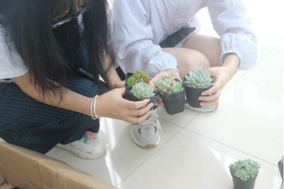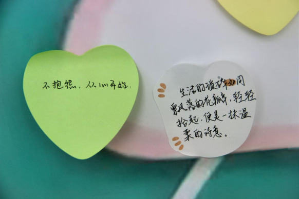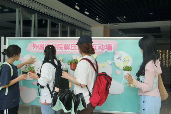 活动采用“线上预参与+线下沉浸式体验”的协同模式,参与者通过线上写下“最想说的解压话”。现场设置“心理能量共振区”,通过结构化心理互动分享墙,引导学生运用积极心理学中的“情绪外化技术”,将内心压力转化为可视化的文字符号进行群体分享,形成同辈心理支持网络。在“绿植生命教育实践环节”,通过记录植物生长周期、照料行为日志,将植物养护过程转化为具身认知实践,借助生物生命历程的可观测性,帮助学生建立“压力-成长”的正向认知关联。活动吸引了各年级学生积极参与,现场气氛热烈,反响良好。