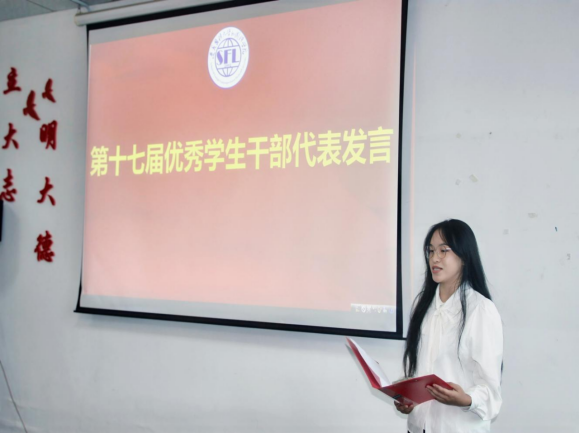 活动在团总支成员刘鲜精彩的开场中正式拉开帷幕,第十七届学生会主席李丽系统回顾了过去一年的工作历程与主要成果,分享了这一年的成长与蜕变。新一届学生会主席熊明红继任发言,明确了未来的工作方向,承诺将带着全体师生的信任与期待,不负重托,砥砺前行。新上任团总支副书记路雅淇强调了党团组织的引领作用与服务同学的宗旨。表彰环节,学院领导、老师为第十七届学生会成员颁发了优秀学生干部荣誉证书及合格证书,充分肯定了他们的辛勤付出;同时,为第十八届学生会主席和部长颁发了聘书。优秀学生干部代表谢玉梅分享了其在任期内的感悟与收获,情真意切,令人动容。