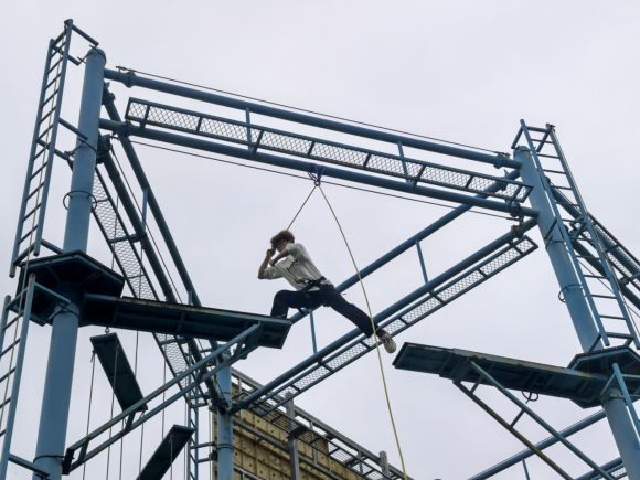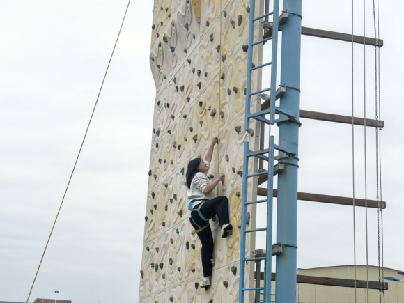 本次活动采用团队积分制挑战赛模式,设置“无敌风火轮”“同心颠鼓球”“合力旋风跑”“高空断桥”“攀岩”等趣味活动。“开幕破冰”环节中,成员自由组建成3支队伍,自主设计队名与口号,有效拉近了彼此距离。整个活动过程既考验成员个人应变与表达能力,又凸显团队协作精神。在轻松热烈的氛围中,成员间的默契进一步提升,大家在互动中加深了解,在合作中收获成长。