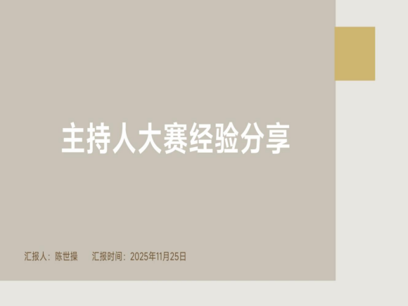 陈世操曾获BW·西汉姆联第一届“星光杯”主持人大赛冠军及最佳风采奖。分享会上,她结合自身经历围绕大赛规则、赛前准备及服装穿搭展开分享。详解初决赛规则与各环节评分要点。对于赛前准备,她建议坚持发声练习、做口播操打磨技巧,通过观看央视主持人大赛及经典案例提升能力。服装穿搭方面,她针对不同主持场景给出搭配建议,提醒同学们得体着装可提升整体表现。